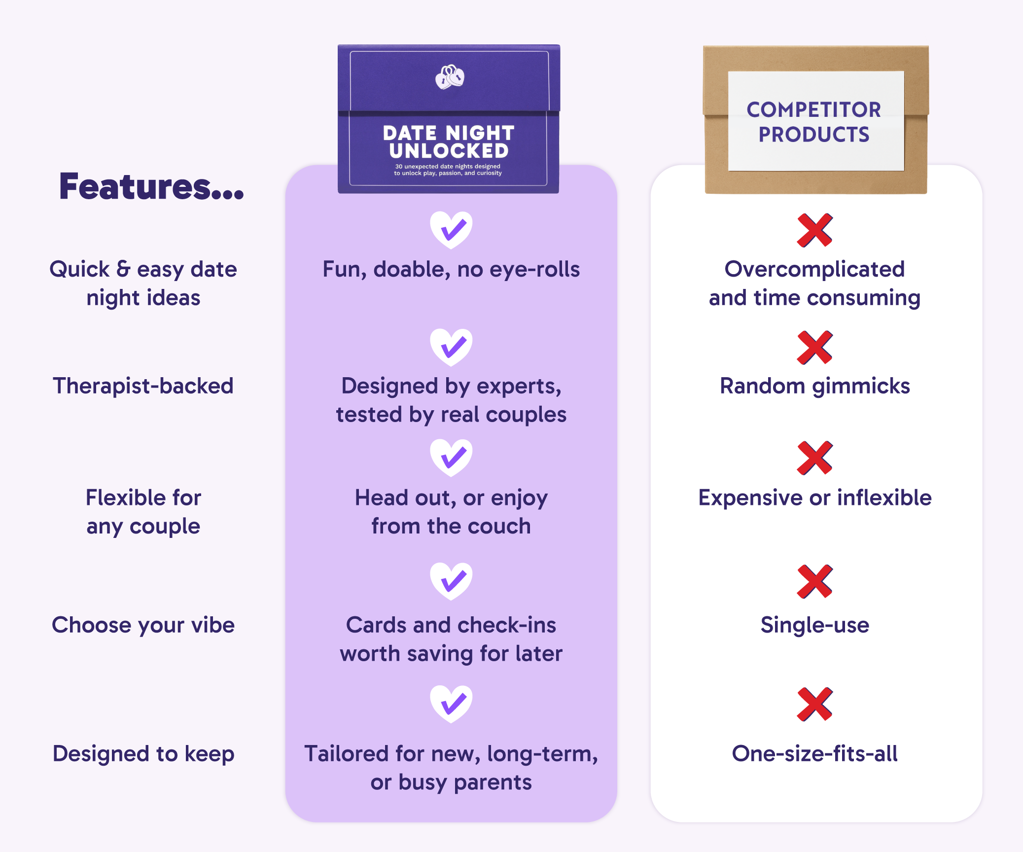 Our mission is to bring all couples closer. Between laundry, kids, work, or hitting your daily step-count—it can be hard to prioritize what matters most. That’s why we’ve brought out a range of products to help couples laugh, talk, and reconnect—even if it’s just for five minutes that day. We hope you love them as much as we do.